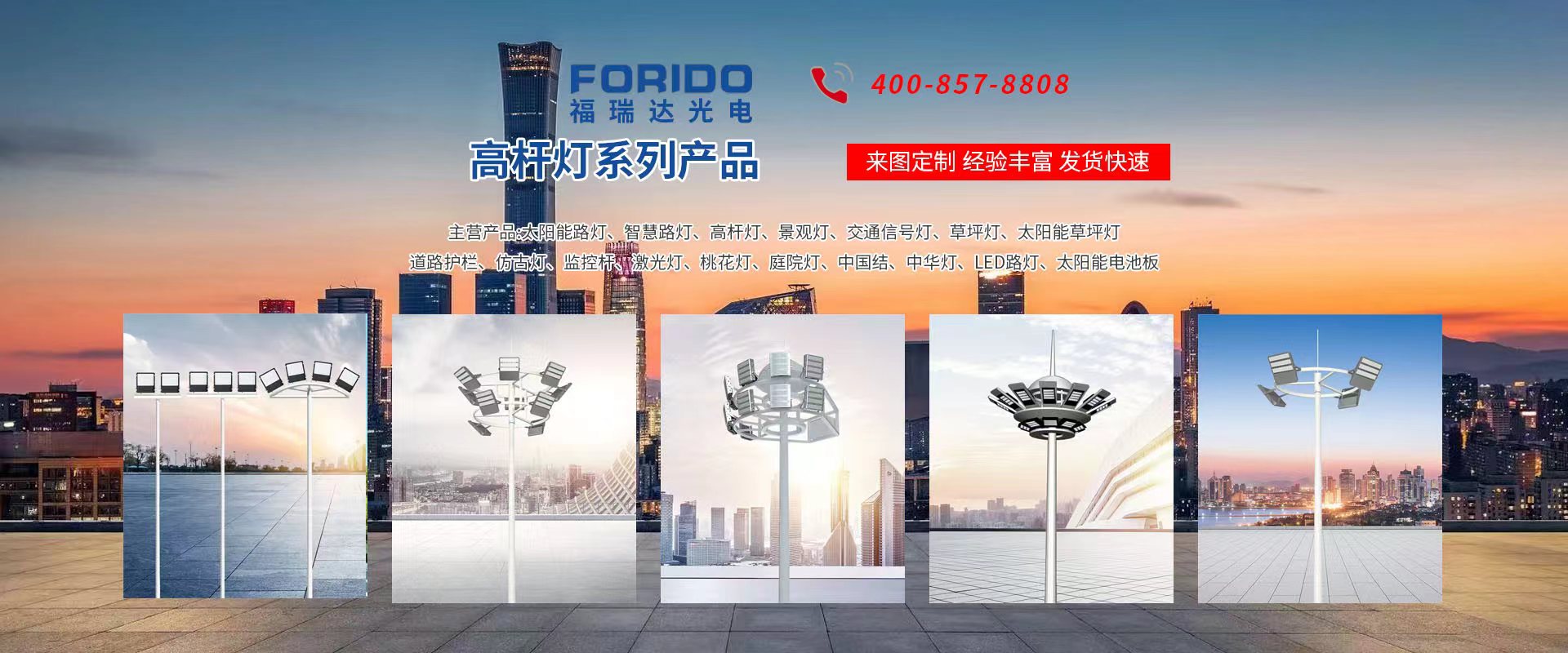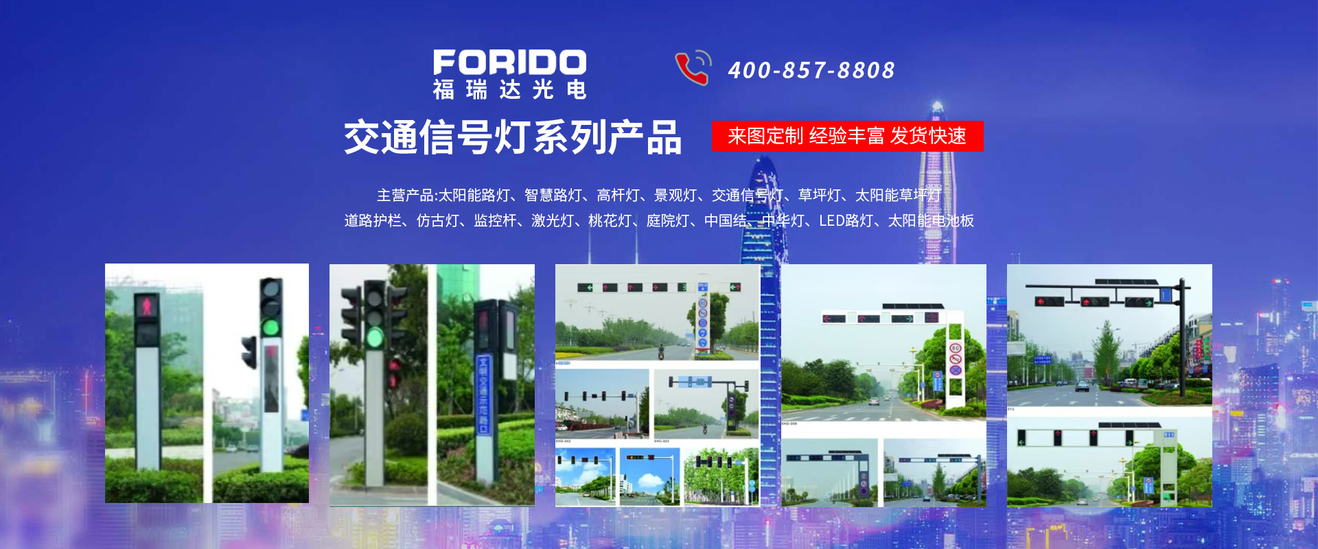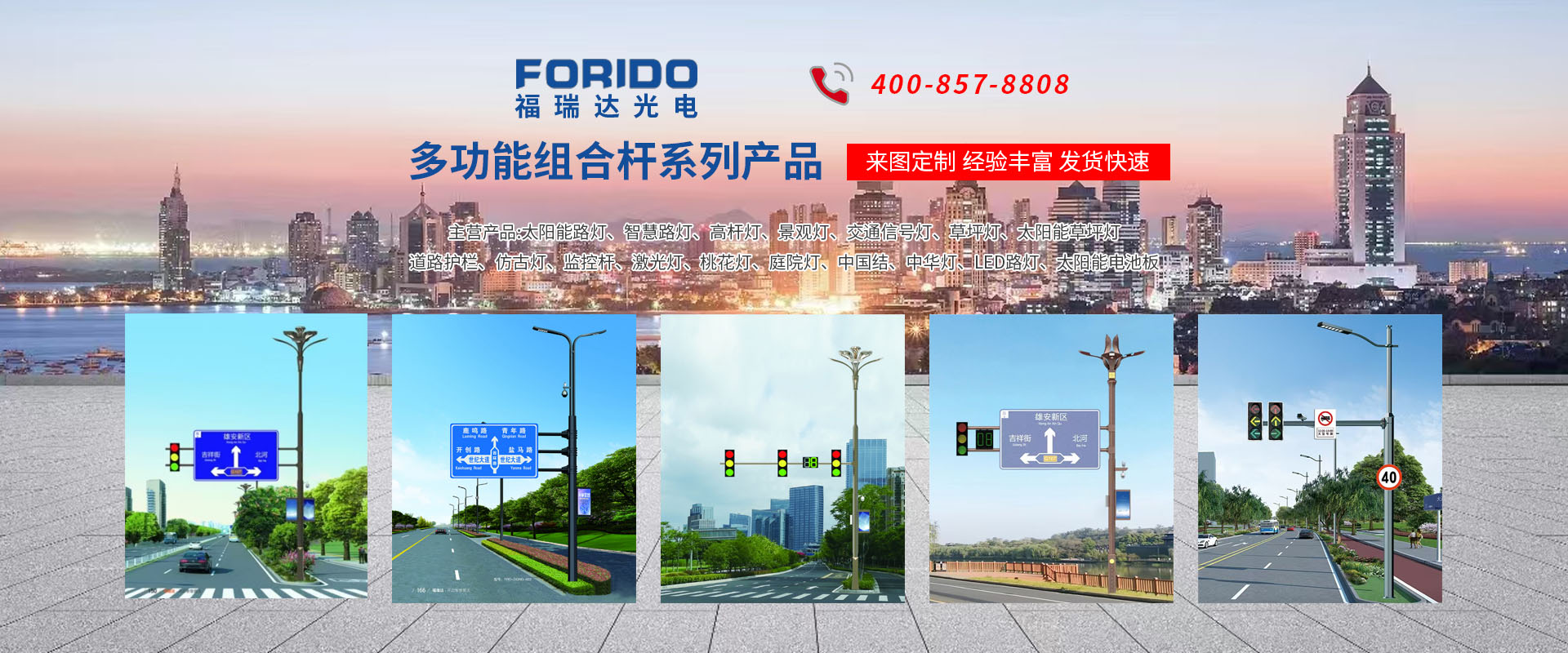 揚(yáng)州福瑞達(dá)光電科技有限公司位于淮左名都?xì)v史文化名城、中國(guó)路燈制造基地?fù)P州市北郊菱塘工業(yè)園,公司占地面積76000平方米,注冊(cè)資金10518萬(wàn)元,擁有高級(jí)技術(shù)嫻熟的員工280多人,擁有大型折彎?rùn)C(jī)、激光切割、數(shù)控注塑機(jī)、壓鑄機(jī)、自動(dòng)埋弧焊、氣焊、彩色粉末靜電噴塑等大型自動(dòng)化設(shè)備,我公司是一家集設(shè)計(jì)、研發(fā)、生產(chǎn)、銷(xiāo)售、施工安裝服務(wù)為一體的戶(hù)外交通照明產(chǎn)品制造商,主要生產(chǎn)智慧路燈、太陽(yáng)能路燈、LED路燈、高桿燈、景觀燈、交通信號(hào)燈、交通標(biāo)志牌、通信鐵塔、路跨鋼結(jié)構(gòu)、公交站臺(tái)、太陽(yáng)能光伏組件、景點(diǎn)亮化、樓宇亮化工程的設(shè)計(jì)施工等。公司秉承開(kāi)拓創(chuàng)新、銳意進(jìn)取、精誠(chéng)服務(wù)的企業(yè)精神,堅(jiān)持以“誠(chéng)信為本、技術(shù)為先、服務(wù)是金”的合作理念,我們憑借先進(jìn)的制造工藝、優(yōu)質(zhì)的產(chǎn)品質(zhì)量、合理的市場(chǎng)價(jià)格和完善的售后服務(wù)贏得了廣闊的市場(chǎng)和客戶(hù)的信賴(lài)?! ∥夜疽淹ㄟ^(guò)ISO9001質(zhì)量體系認(rèn)證、ISO14001環(huán)境管理體認(rèn)證,CQC產(chǎn)品認(rèn)證,中國(guó)節(jié)能產(chǎn)品認(rèn)證,通過(guò)“CCC”強(qiáng)制性產(chǎn)品認(rèn)證,具有市政總承包,照明,交安,設(shè)計(jì)等資質(zhì)···